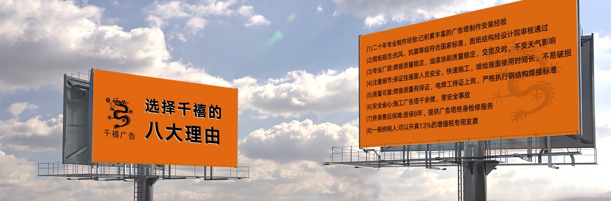 世紀之交,石家莊千禧廣告裝飾有限公司(下方簡稱千禧廣告公司或公司)自2000年10月10日創(chuàng)立伊始,即在燕趙大地落地生根,成長為國內擁有23年施工經驗的實體型戶外廣告設施制作工廠。公司集新品研發(fā)、結構設計、生產制作、施工建造于一體,現代化生產廠房為大中型高炮廣告牌(又稱高炮廣告塔、單立柱廣告牌、單立柱廣告塔、擎天柱廣告塔、擎天柱廣告牌)、龍門架、三面翻鋼結構、LED廣告屏鋼結構等的精益生產、高效流水化作業(yè),產品交工質量過硬,公司擁有現代化生產車間,配備了不可或缺的硬件裝備。